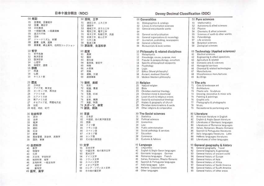 これは日本十進分類法と呼ばれ、本をカテゴリーごとに分類し本を探しやすくしてくれます。全国の多くの図書館と図書室が採用しています。